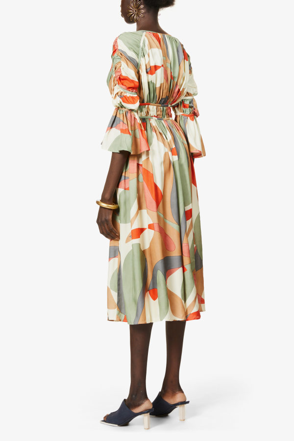 Beige Cold Shoulder Satin Midi Dress. Cult Gaia Cult Gaia. Dress Hire from 129 sizes 6-14.